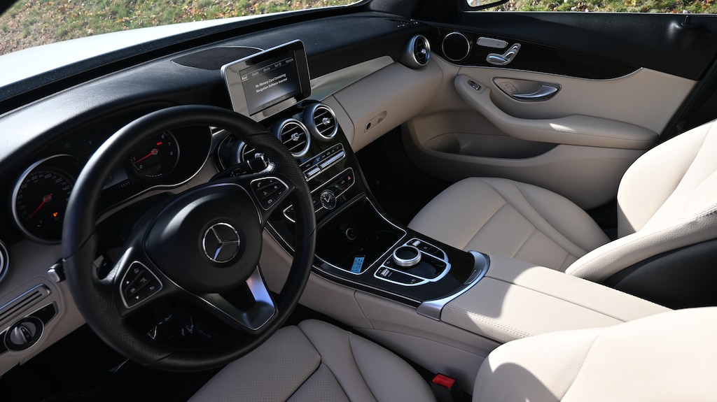 Full-Time 4MATIC® All-Wheel, Back-Up Camera, Turbocharged, iPod/MP3 Input, CD Player. Mercedes-Benz C 300 with Polar White exterior and Silk Beige MB-Tex interior features a 4 Cylinder Engine with 241 HP at 5550 RPM*. CARFAX 1-Owner